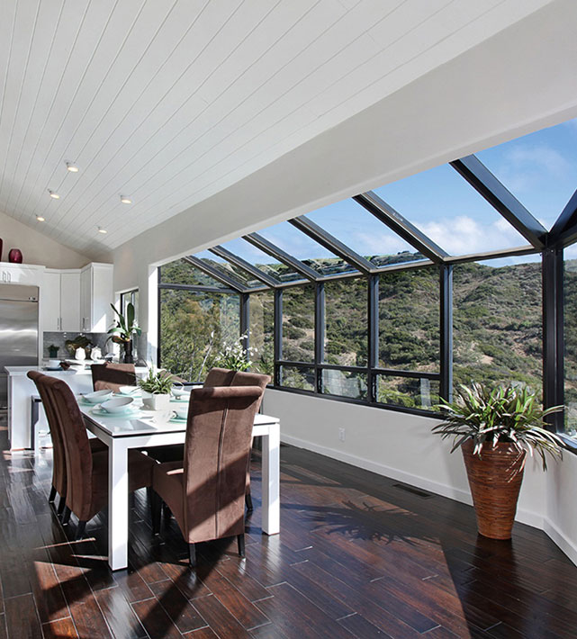 2025年主流系统阳光房的常见类型及特点,综合市场报告与设计案例整理:一、按结构分类固定式系统阳光房断桥铝系统:采用多腔体断桥结构,隔热系数≤1.8W/(㎡·K),支持大跨度设计铝包木系统:外层铝合金抗老化···